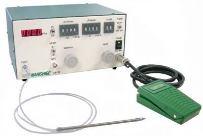 这个装置有2种模式:计数模式设置,以设置压强/时间/计数和注入溶液;脚踏开关模式设置,只有压强和注入溶液,可以根据实验应用程序选择同时按下脚踏开关。此外,设置计数时,计数也可能递增。另外,通过TTL信号输入(负逻辑),外部控制可以达到与脚踏开关相同的动作效果。